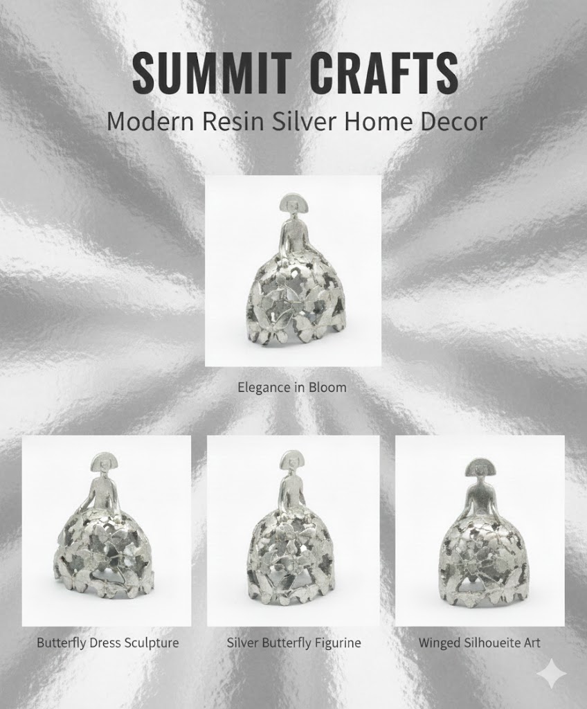 - Elegant Silver Resin Statue | Handcrafted Home Decor Sculpture with Butterfly Motif for Indoor Decoration